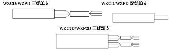 例1:WZPD-2×10×60-3D-0-Pt100表示:電機(jī)用鉑電阻溫度傳感器、本體尺寸2×10×60mm,3根引線,每根引線長度2000mm,引線屏蔽,分度號為Pt100。